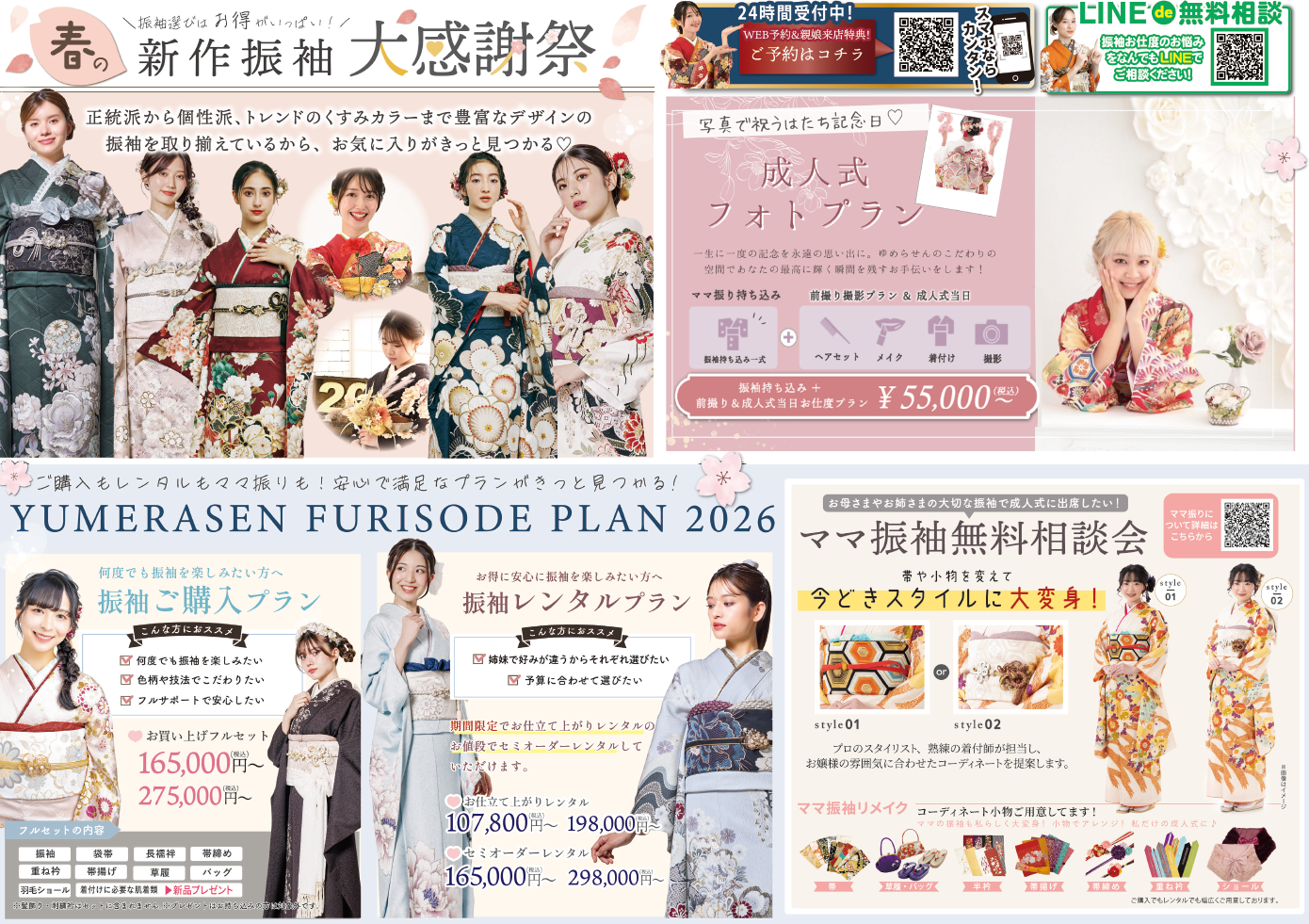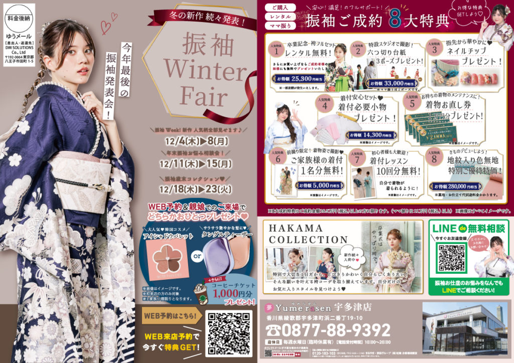 ぜひ振袖選びや振袖撮影、前撮りで困ったことがあれば、夢楽染 宇多津店へ♪